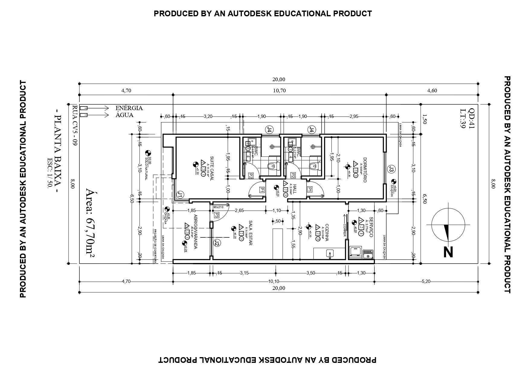 CASA DE (67,70M²), LOTE DE (8Mx20,00M=160,00M²)