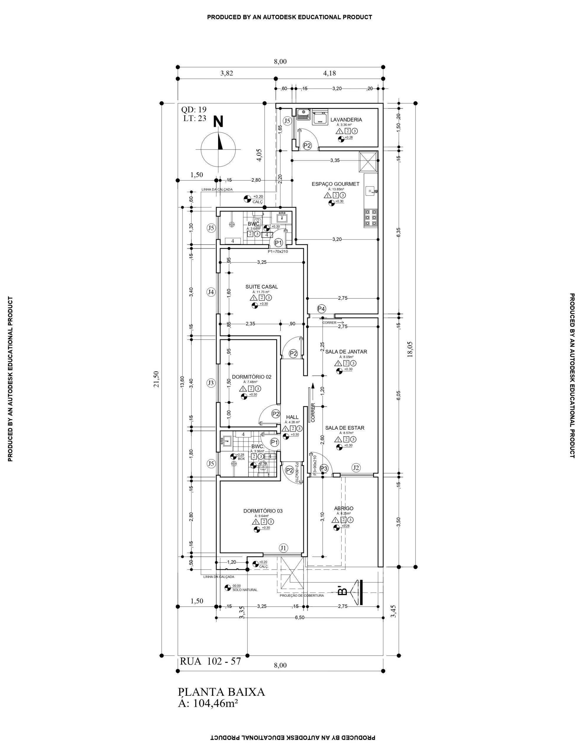 CASA DE (104,46M²), LOTE DE (8MX21,50M=170,00M²)